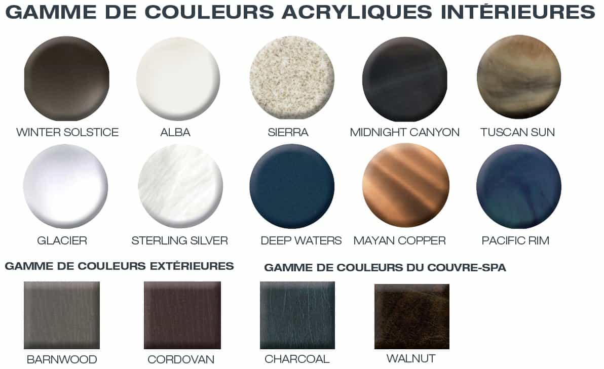 - Intérieur acrylique : Tous les coloris sont disponibles